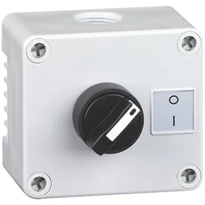 2-position, standard lever selector switch control station. Includes 1 normally open and 1 normally closed contact block, 2 x M20 threaded and 1 x M20 non-threaded cable entry knockouts.